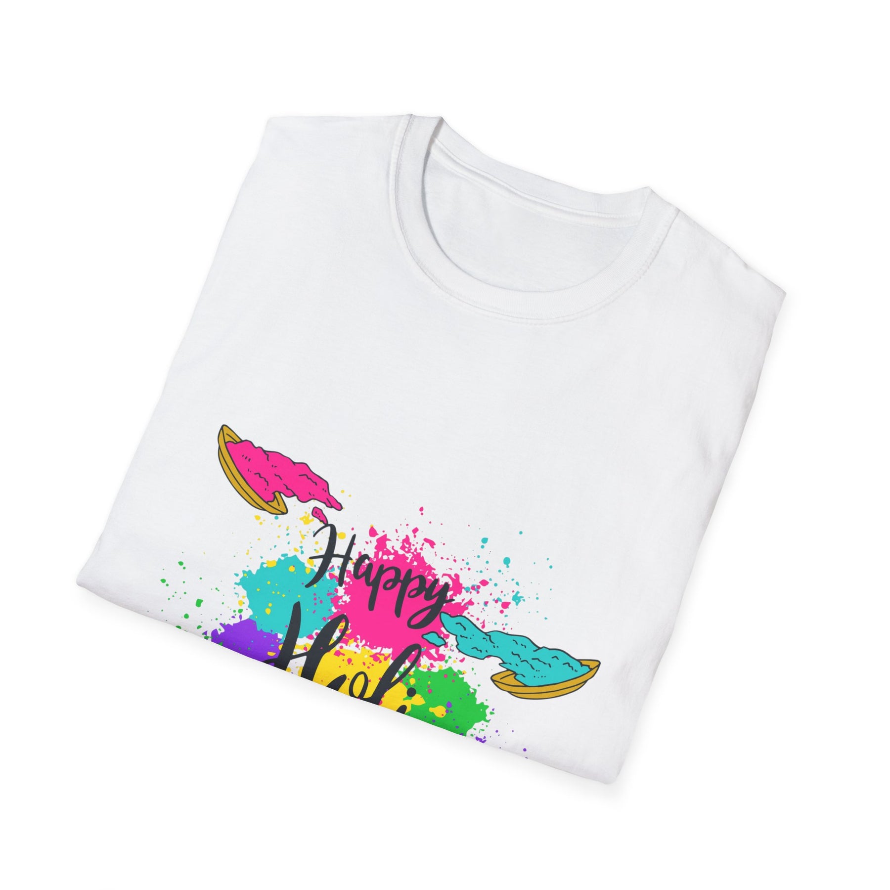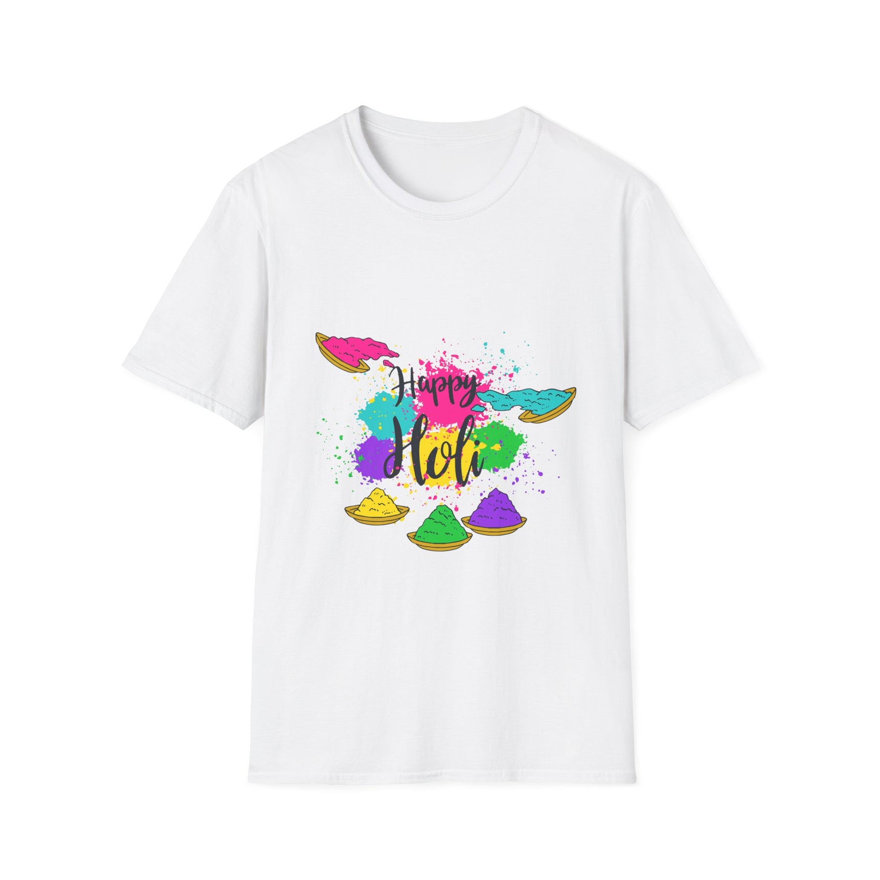 Celebrate color and togetherness with this lightweight cotton tee that brings Holi’s playful spirit into everyday wear. Bright splashes of magenta, teal, yellow and purple burst across the chest in a hand-painted style, anchored by festive bowls of powdered color. The crew neckline and classic fit keep the silhouette simple so the art can shine. Wear it to neighborhood gatherings, community Holi events, or casual weekends when you want a joyful pop of color. Breathable ring-spun cotton and a soft, smooth surface make prints vibrant and comfortable through repeated wear.